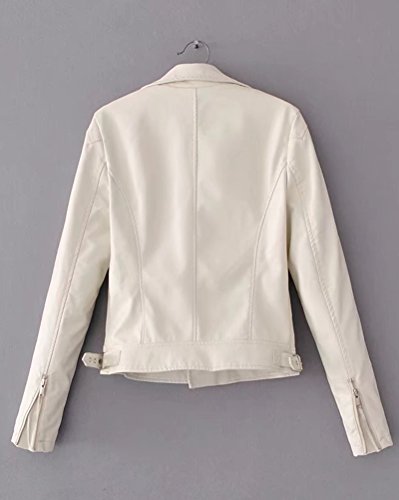 Giacca Donna Pelle Pu Risvolto Collare Classic Corto Moto Giubbotto Jacket Bianca XL