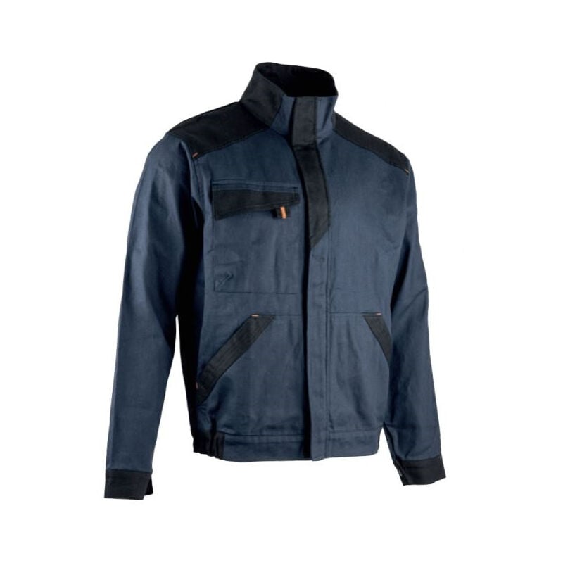 Dettagli: Collo alto Zip iniettata nascosta sotto l'abbottonatura 1 tasca applicata con patta sul carré a contrasto chiusa con gancetto 2 tasche a canguro con inserti a contrasto Fascia elastica laterale in vita Polsini a fessura antistrappo, chiusi con bottoni a pressione in plastica Retro: abbottonatura con gancetto - 2 pieghe di chiusura Pannelli delle spalle a contrasto Fermi a contrasto arancione fluorescente Caratteristiche: Composizione: 100% poliestere - 300g/mq Blu scuro / nero