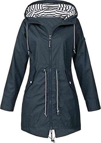 Giacca Impermeabile Antipioggia Cappotto Lungo con Cintura Giacche A Vento Donna Leggera con Cappuccio Taglie Forti Ragazza Cappotti Giubbotto Trekking Traspirante Zip Sportiva Parka (Blu navy, 5XL)