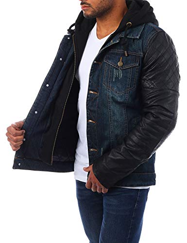 Giacca invernale da uomo foderata della marca Young & Rich in jeans vintage con interno e maniche in finta pelle. Blu L