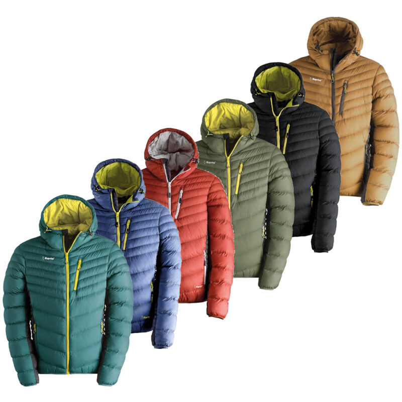 inoltre la Thermic è così realizzata: Tessuto 100% Nylon RipStop 20D, rivestito in PU che assicura morbidezza e resistenza Fodera interno thermore EkoDown Fibers 250 gr/mq traspirante, che assicura comfort e morbidezza Rifinitura 100% Nylon 20 D 40 gr/mq Cerniera chiusura lunga fino al collo 2 tasche scaldamani e una sul petto chiuse da zip Polsini e orlo al fondo con banda elastica Cappuccio integrato, regolabile con coulisse, che protegge dal freddo Il Giubbotto imbottito Kapriol Thermic è