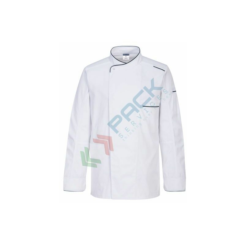 Questa giacca da chef utilizza un tessuto leggero e offre una silhouette moderna e più sottile con una vestibilità ergonomica. Le caratteristiche di questa giacca includono chiusura frontale con bottoni nascosti a doppio petto, tasca laterale con zip e ampi pannelli MeshAir Pro sul retro e sulle ascelle per un'eccezionale traspirabilità. Fabbricato in 100% cotone per un'eccellente resistenza alla trazione e al pilling La finitura del tessuto aiuta a respingere l'olio, l'acqua e la sporcizia. Tessuto mesh aerato MeshAir per aumentare il flusso d'aria Facile apertura frontale con bottoni Tasca con zip nascosta Stile superiore con polsini alla francese Vestibilità slim per un comfort eccezionale Fabbricato in 100% cotone per un'eccellente resistenza alla trazione e al pilling 3 tasche ampie Nuovo articolo