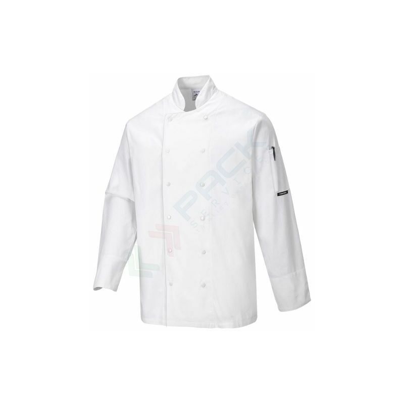 Progettata per i professionisti impegnati nella ristorazione, la giacca Dundee è la scelta perfetta per gli ambienti di cucina caldi. Caratteristiche di questa giacca elegante includono una tasca sulla manica a portata di mano, i polsini francesi, 6 file di bottoni bianchi a pressione, maglia in rete MeshAir aerata alle ascelle, due maniche a pezzo e pannelli sagomati posteriori per una vestibilità contemporanea. Fabbricato in 100% cotone per un'eccellente resistenza alla trazione e al pilling Non si restringe e mantiene la sua forma lavaggio dopo lavaggio Tessuto mesh aerato MeshAir™ per aumentare il flusso d'aria Sei file di bottoni a pressione per una facile apertura Tasca sulla manica Stile superiore con polsini alla francese Design superiore con una manica a due pezzi Colletto alla coreana Inserti laterali per una moderna vestibilità