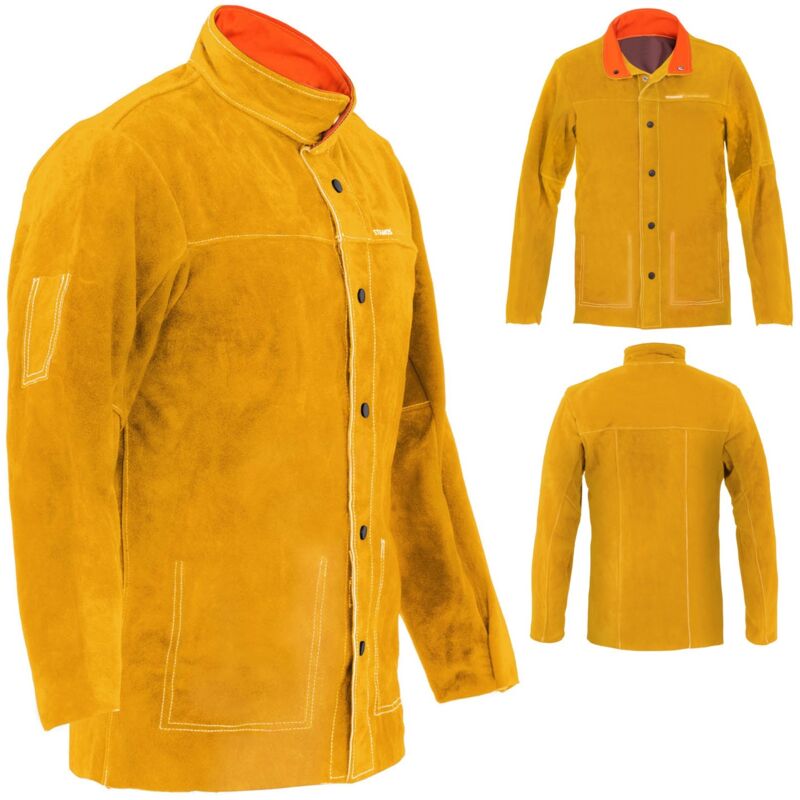 Per la protezione durante la saldatura: la giacca per saldatore dorata di marca Stamos Welding Group ✅ Modello: SWJ02L ✅ Articolo: 10021099 ⬇️ Caratteristiche principali Materiale: giacca protettiva realizzata in pelle di crosta bovina di alta qualità. Cuciture: fili resistenti al calore e allo strappo. Realizzazione: lavorazione resistente e ignifuga. Sicura: bottoni a pressione isolati elettricamente. Pratica: due tasche interne e due tasche esterne sulle maniche. ⬇️ Dettagli tecnici Taglia (S - XXL) L Classe di protezione 2 Materiale Crosta in pelle di bovino Colore Oro Lunghezza [cm] 85 Larghezza del torace [cm] 117 Larghezza 51 cm Larghezza manica 36 cm Lunghezza manica 64 cm Manuale Sì ⬇️ Descrizione del prodotto Soltanto una giacca per saldatura adeguata, conforme alle norme, può proteggere efficacemente da calore, scorie e scintille. E ovviamente protegge anche dalle bruciature, in caso facciate un utilizzo occasionale della saldatrice. Con questa giacca da saldatore di