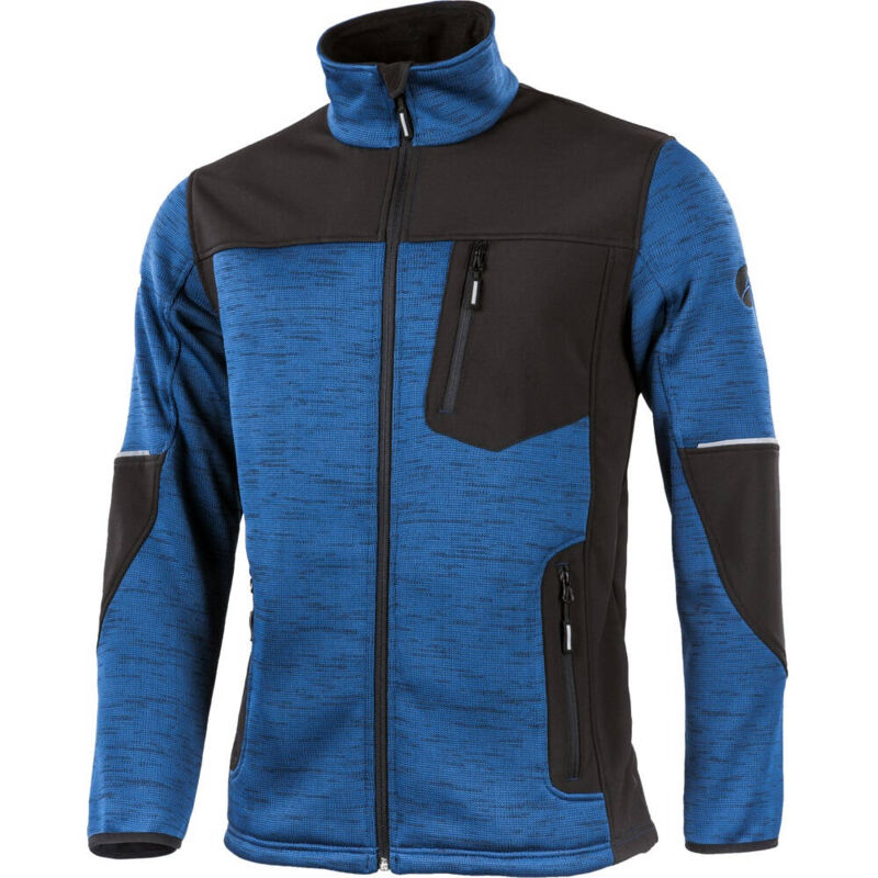 Caratteristiche: Giacca in felpa lavorata a maglia dal design moderno con inserti Softshell Pile lavorato a maglia piacevolmente morbido, 370 g/m² Vestibilità classica Strisce riflettenti per una migliore visibilità Tasca sul petto con cerniera Due tasche inferiori con cerniera Chiusura continua con mentoniera e protezione antivento Polsini elastici Orlo elastico regolabile Materiali: 96% poliestere, 4% elastan