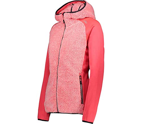 CMP Giacca Stretch in Pile Teddy con Cappuccio, Donna, Red Fluo, 44, Red Fluo