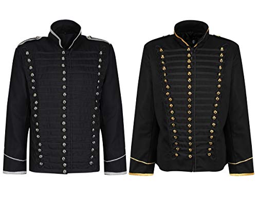 Ro Rox Giacca Stretta di Parata Militare Punk Goth per Uomini - Nero & Oro (XX-Large)