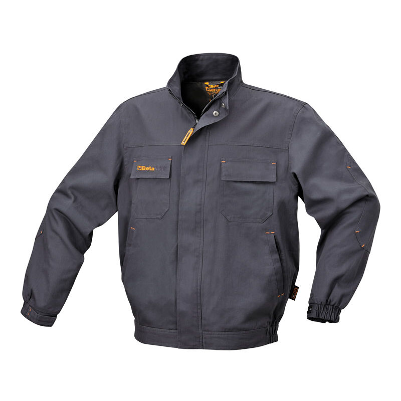 Giacca da lavoro Beta, molto semplice e comoda, chiusura in zip, ad alta qualità ed economica -100% cotone, 260 g -Inserti gomiti in cotone -Chiusura frontale con zip doppio cursore, coperta da patella con bottoni a clip -Polsini regolabili a strappo -Elastico in vita -Due tasche al petto con chiusura a strappo -Due profonde tasche anteriori con chiusura zip