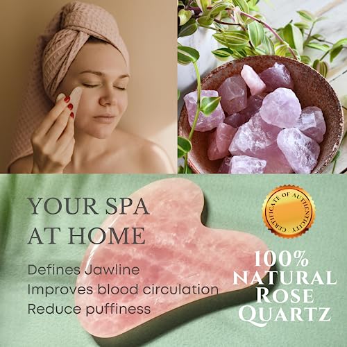 LA TUA STAZIONE TERMALE A CASA: Questo Gua Sha offre la perfetta esperienza di auto-cura per i momenti in cui hai bisogno di riposo extra simile a una SPA nella tua casa. Gli effetti positivi della pietra di quarzo rosa e giada non parlano solo delle sue proprietà millenarie, ma anche dei benefici legati alla calma mentale e alla sensazione di riposo e relax. Inoltre, ha qualità preventive a lungo termine nel benessere e nella salute generale.