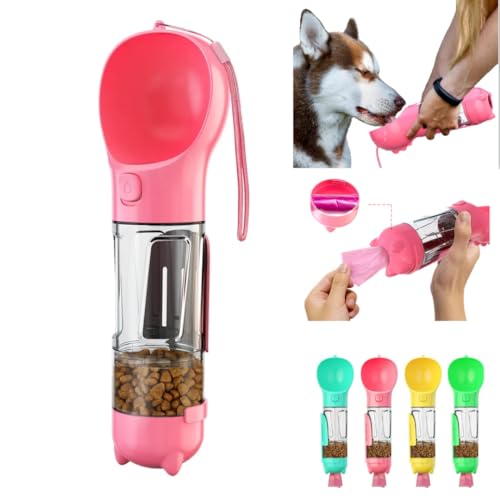 GIAL Borraccia 300ml per Animali Portatile: Kit Viaggio Acqua e Cibo per Cani e Gatti con Porta Crocchette, Bottiglietta Porta Acqua e Sacchetti Igienici
