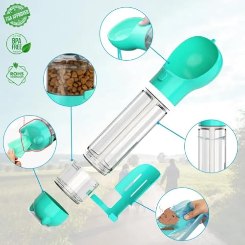 [Praticità in viaggio]: La borraccia portatile GIAL è un kit completo per l'alimentazione dei tuoi animali durante i viaggi, dotato di tre contenitori separati per acqua, cibo e sacchetti igienici, tutto in un unico dispositivo comodo e leggero sigillato ermeticamente.
