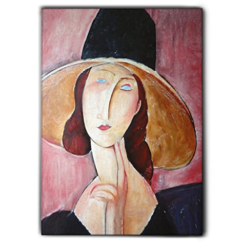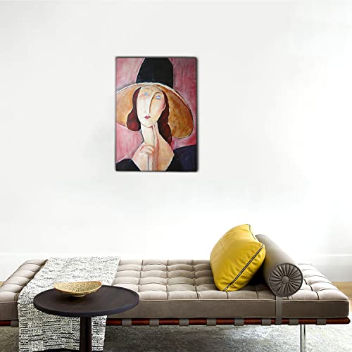Giallobus - Quadro - Amedeo Modigliani - Jeanne Hebuterne con Copricapo Largo - Tela Canvas Telaio Premium Alto Spessore - 50x70 - Pronto da Appendere - Quadri Moderni per la casa