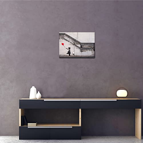 Giallobus - Quadro - Banksy - Bimba palloncino rosso - Tela Canvas Telaio Standard - 50x35 - Pronto da appendere - Quadri moderni per la casa