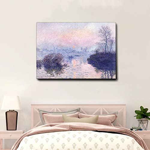 Giallobus - Quadro - Claude Monet - Paesaggio al Tramonto - Tela Canvas Telaio Premium Alto Spessore - 140x100 - Pronto da Appendere - Quadri Moderni per la casa