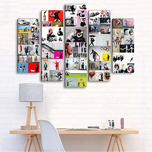Giallobus - Quadro 5 Pannelli Art Board - Banksy - Banksy Collage 2 - Legno MDF - 140x100