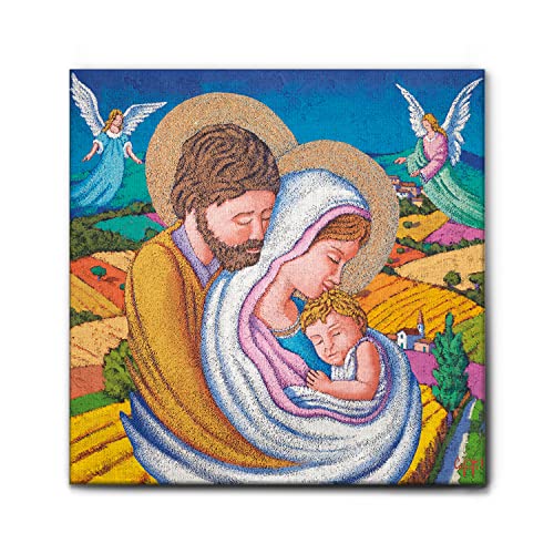 Giallobus - Quadro - Stefano Calisti - Capezzale Moderno - Sacra Famiglia in collina - Tela Canvas Telaio Premium Alto Spessore - 50x50 - Pronto da Appendere - Quadri Moderni per la casa