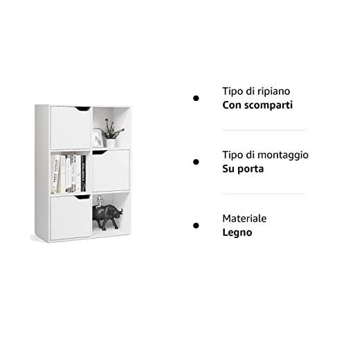 9/6 scomparti: Questa libreria a 3 piani è composta da 9 o 6 cubi, in cui libri, riveste, foto, piante e altrie decorazioni possono essere conservati ordinatamente.