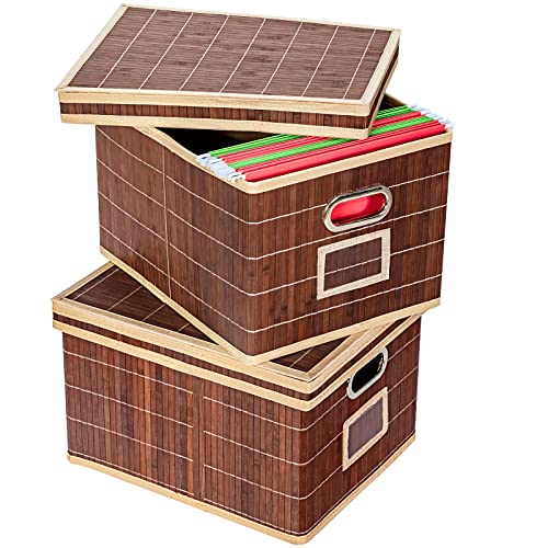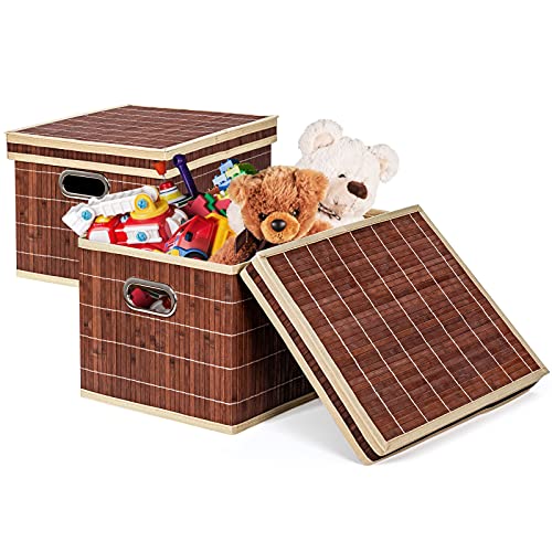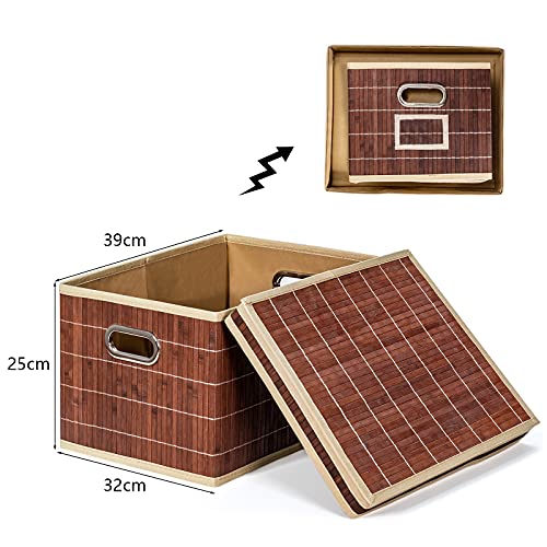 GIANTEX Set di 2 Cesti Portaoggetti, Pieghevole e Impilabile, con Coperchio & Maniglia, in Bambù, Fodera in Tessuto, Ideale per Vestiti, Libri e Giocattoli, 39x32x25 cm, Marrone/Naturale