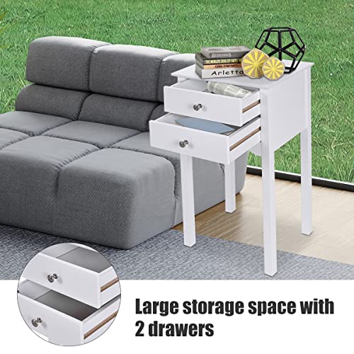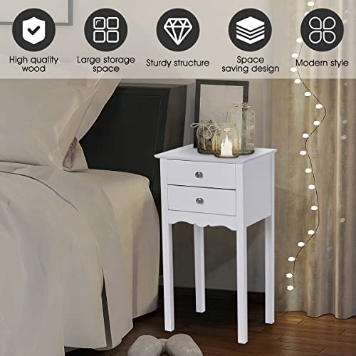 GIANTEX Comodino con 2 Cassetti, in Legno, 40 x 32,5 x 75 cm, con Portata Fino a 30 kg (Bianco)