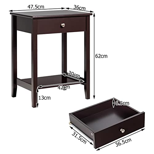 Giantex Comodino di Legno a 2 Ripiani, Tavolo Console Stretto da Divano con Cassetto, Salvaspazio e Multiuso, Arredo per Soggiorno, Camera, Ufficio, 47 x 36 x 62 cm, 3 Colori (marrone, 2 pezzi)
