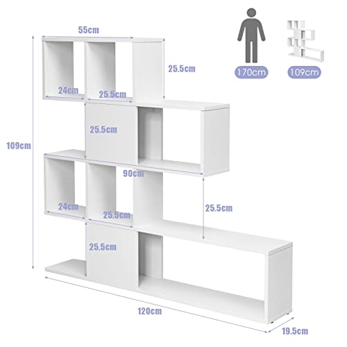 GIANTEX Libreria a Forma di Scala a 4 Piani, Libreria Geometrica Moderno con 10 Scomparti Aperti, Organizzatore di Cubi, Espositore e Scaffale per Soggiorno, Camera, Ufficio, 2 Colori (Bianco)