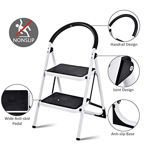 Lunga durata: La scaletta pieghevole è realizzata in ferro di alta qualità, molto robusta, durevole e può sopportare fino a 150 kg. La superficie della scala è verniciata con vernice bianca che offre una maggiore protezione contro ruggine e corrosione.