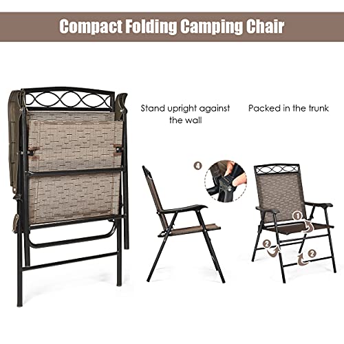 Giantex - Set di 4 Sedie da Spiaggia Pieghevoli con Telaio in Metallo, Sedia da Campeggio Portatile con Braccioli, ideale per Giardino, Piscina, Campeggio, Carico Massimo 110 kg, Colore: Marrone