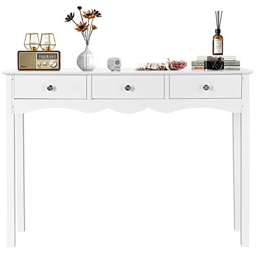 GIANTEX Tavolo Consolle, con 3 Cassetti, Console e Tavoli da Divano, Design Compatto e Stretto, Ingresso, Salotto, Salvaspazio e Moderno, Portata di 45 kg, 100x32x75 cm (Bianco)