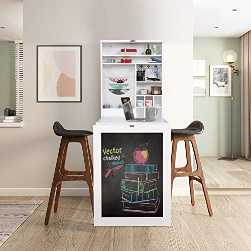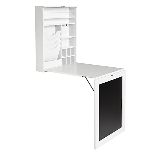 Giantex Tavolo da Parete, Pieghevole e Salvaspazio, con Ganci, Portariviste e Scomparti da Portaoggetti, Lavagna Cancellabile, 60x16x75 cm, 4 Colori Disponibili (Bianco)