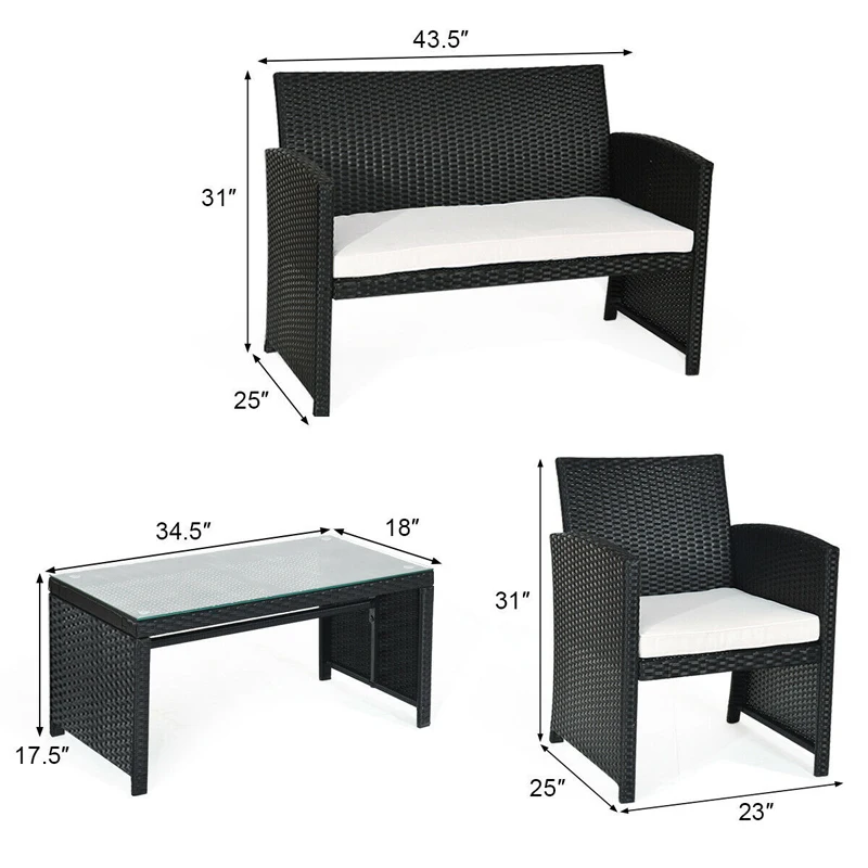 GIANTEX 4 Pcs Wicker Conversation Furniture Set Patio Sofa and Table Set HW63239