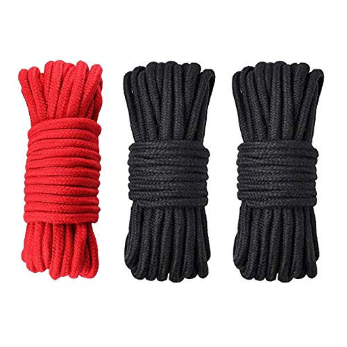 GiantGo Corda in cotone, morbida, per legare, multiuso, spessa, per lavori artigianali, lunghezza 10 m, diametro 8 mm, 3 rotoli, 2 nere, 1 rossa