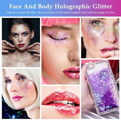Splendido set glitterato: ogni scatola contiene paillettes esagonali, dalla polvere fine a grossolana, per creare un effetto glitter naturale. Non sbiadisce, nessun danno al tuo corpo o alla pelle, applicare direttamente su unghie, viso, corpo e capelli per far brillare le tue creazioni creative.