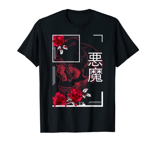 Giapponese Goth Demone Diavolo Estetico Cranio Anime Harajuku Maglietta