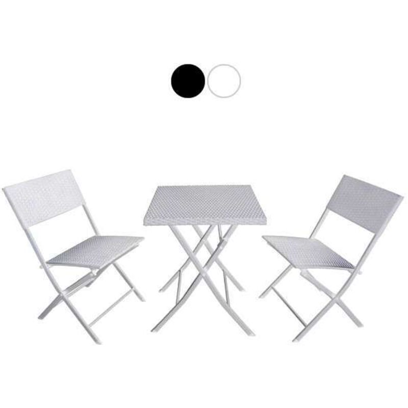 Colore bianco - pieghevole - sto da 1 tavolo e 2 sedie - sedie cm.45x57,5x81h. - kg.2,7 - tavolo quadro cm.58x58x70h. - kg.4,7 - struttura acciaio