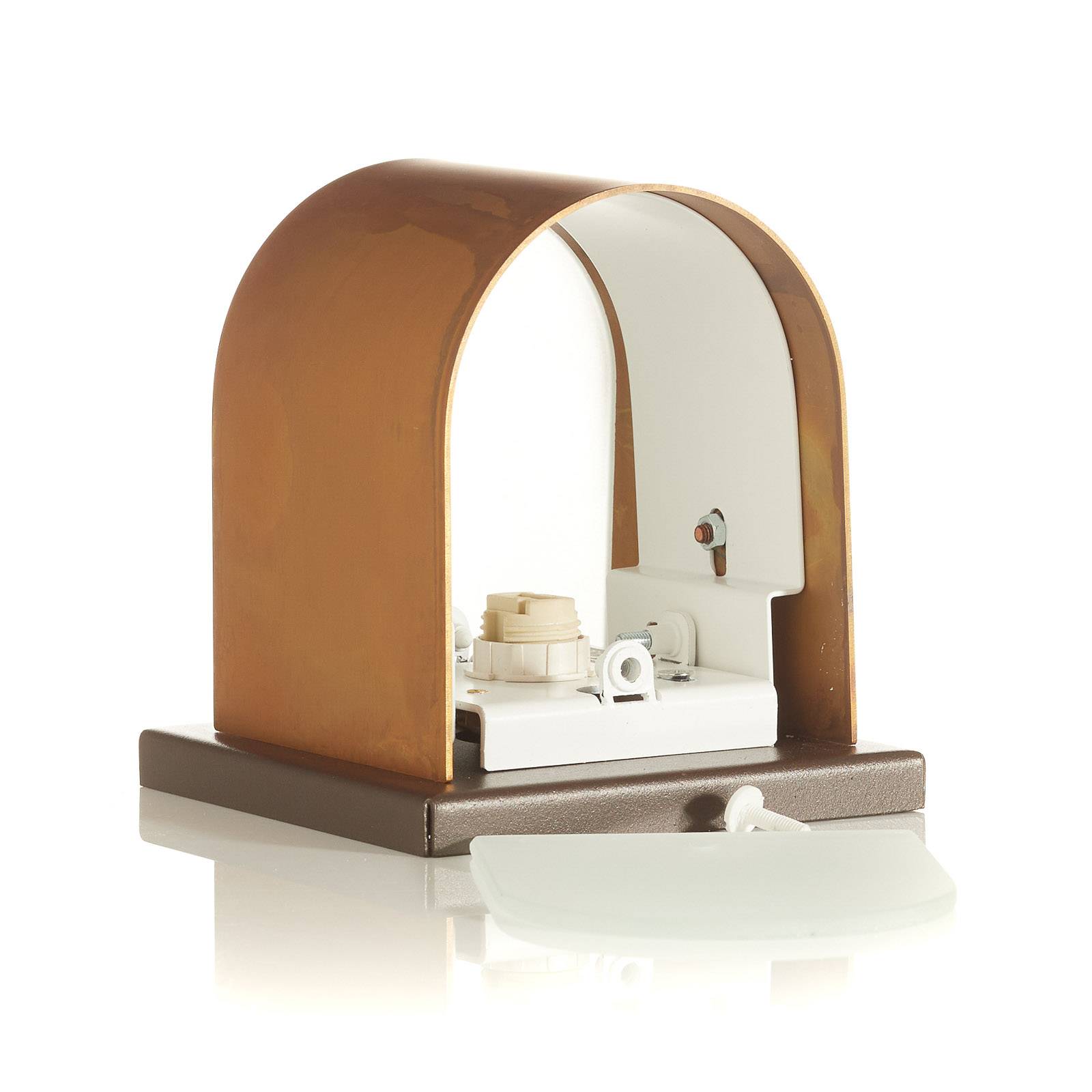 Piccola lampada da parete Lola di grande effettoIl look e l'effetto luminoso della piccola lampada da parete Lola sono stimolanti, perché la lampada è composta da un paralume in ottone ossidato e da una placca da parete marrone che sporge leggermente e forma un contrasto con il metallo. Il paralume è chiuso in alto e in basso da diffusori, attraverso i quali la luce brilla verso l'alto e verso il basso, creando un bagliore decorativo sulla parete. Questa piccola lampada da parete si adatta perfettamente allo stile rustico degli interni e può essere dotata di lampade alogene G9 (non incluse).