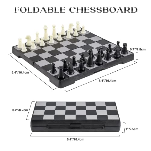 Gibot Mini Viaggia a scacchi a scacchi pieghevoli a scacchi a scacchi da viaggio a scacchi (Bianco e nero)