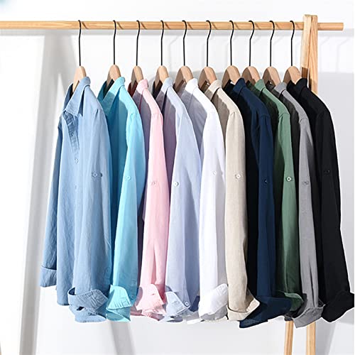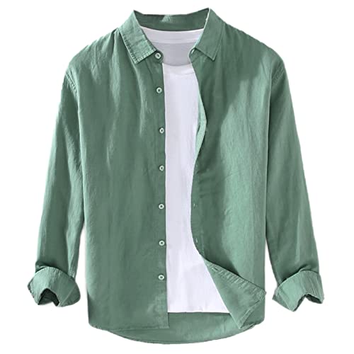 GIBZ Camicie da Uomo in Lino Camicie Casual da Spiaggia a Maniche Lunghe con Bottoni Verde S