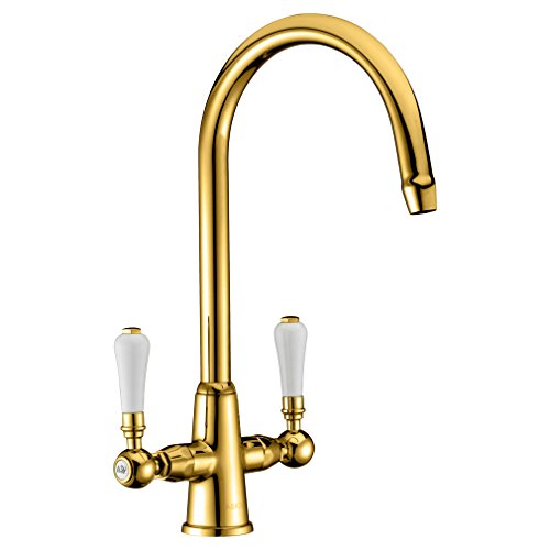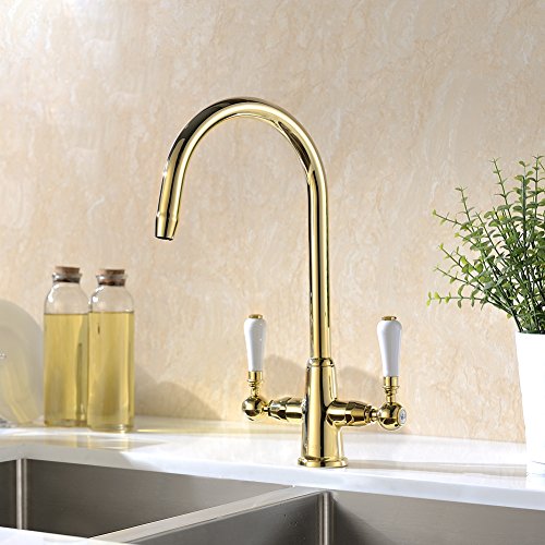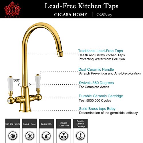 GICASA Rubinetteria tradizionali in piombo senza piombo per cucina, ottone monoblocco ottone girevole gemello Lever Mix cucina dorata, d'oro doppio lavabo cucina rubinetto