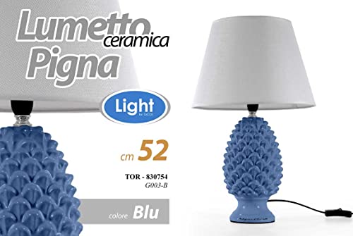 GICOS IMPORT EXPORT SRL Lampada lumetto forma pigna con base in ceramica colore blu cappa bianca 52CM cm attacco lampada E14 TOR-830754