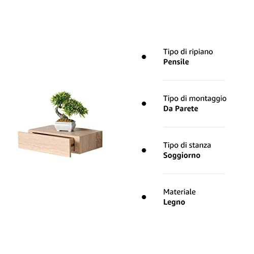 GICOS IMPORT EXPORT SRL Mensola Cassetto Sospeso da Parete Scaffale in Legno MDF Rovere 40x24x10cm, 40 x 24 x 10 cm