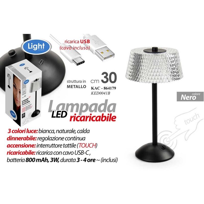 Lampada led 800mah 1 w 3l cm.30 led touch ricaricabile