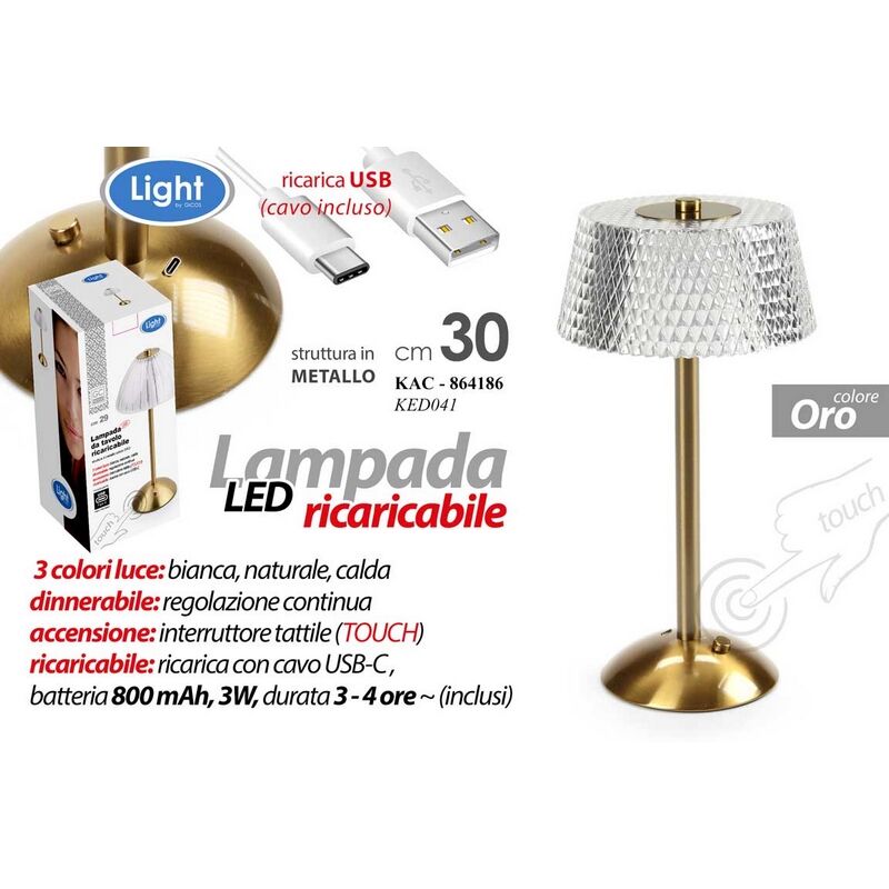 Lampada led 800mah 1 w 3l cm.30 led touc h ricaricabile