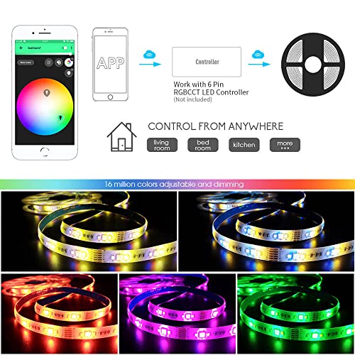 Funziona con controller LED RGBWW a 6 fili: compatibile con controller WLAN RGBCCT, controller Bluetooth RGBCCT, telecomando, decodificatore DMX512 e altri controller a 5 canali, strisce LED per interni.