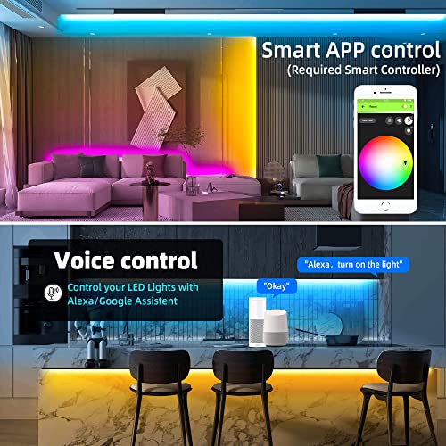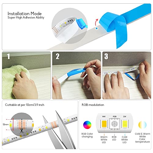 Controllo intelligente tramite app e controllo vocale: lavora con il controller Smart RGBCCT, controlla le luci LED in qualsiasi momento e ovunque tramite l'app del telefono. O semplicemente semplici comandi vocali per controllare le luci tramite Alexa/Google Assistant;
