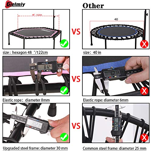 Gielmiy Trampolino Silenzioso Fitness Ø 122 cm,con Braccioli Regolabili a 3 Llivelli,Cardio Training per Adulti, per Esercizi Indoor/Giardino, Portata Massima 150 kg