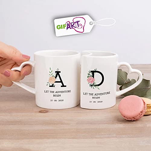 GIFART Tazza Doppia con Manico a Forma di Cuore ad Incastro da Personalizzare con Foto o Grafica