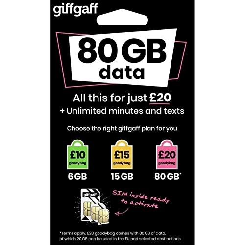Giffgaff Scheda SIM. 80 GB di dati, minuti illimitati e testi. Ricarica dura 30 giorni