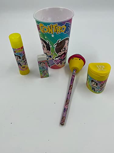 FCP Gift Set Desk Me Contro Te Lui Sofi Bambina Kit Accessori Scuola Giochi elementari Bicchiere con Penna Squishy temperino Colla