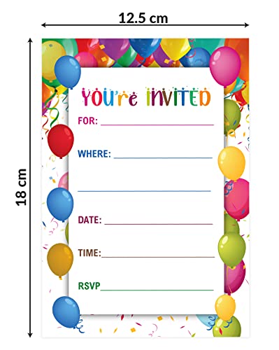 Dimensioni ideali: Il biglietto di invito per feste è di circa 18 cm di lunghezza e 12,5 cm di larghezza. Abbastanza spazio vuoto per scrivere i dettagli della festa. Questi inviti con palloncini sono splendidamente progettati per la tua festa con buste gialle.
