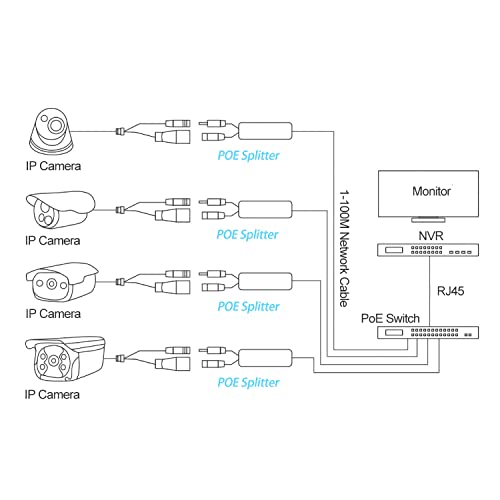 Gigabit PoE Splitter 12V 1A Uscita, IEEE 802.3af Standard Conforme 10,100,1000 Mbps Adattatore Splitter Power Over Ethernet per Sorveglianza CCTV Telecamera IP 5.5x2.1mm DC Cable (PS5712G)